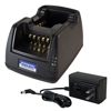 May be used with NiCd, NiMH, Li-Ion, and LiPo batteries based on charging pod installed. Charging status of rear radio position confirmed by top LED. Charging status of front radio position confirmed by middle LED. Bottom LED illuminates to confirm charger is receiving power when both front and rear positions are empty.
